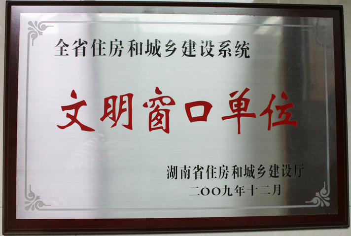 • 2009年12月被湖南省住房和城鄉(xiāng)建設廳評為“全省住房和城鄉(xiāng)建設系統(tǒng)文明窗口單位”